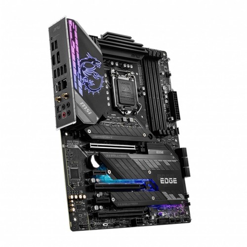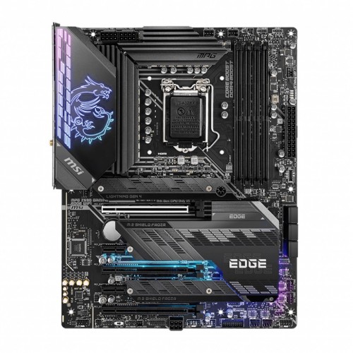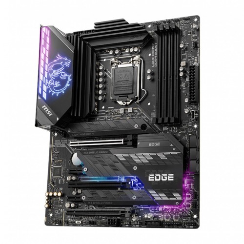 MSI MPG Z590 GAMING EDGE WIFI 10th and 11th Gen M-ATX Motherboard support 11th and 10th Gen Intel Core / Pentium Celeron processors for LGA 1200 socket. It supports DDR4 Memory, up to 5333(OC) MHz. It offers Lightning Fast Game experience: PCIe 4.0, Lightning Gen 4 x4 M.2, USB 3.2 Gen 2×2. It comes with a 14+1+1 Duet Rail Power System, dual 8-pin CPU power connectors, Core Boost, DDR4 Boost. Enlarged heatsink with heat pipe, MOSFET thermal pads rated for 7W/mk, additional choke thermal pads, and 3x M.2 Shield Frozr are built for high-performance system and non-stop gaming experience. it features MYSTIC LIGHT, 16.8 million colors / 29 effects controlled in one click. MYSTIC LIGHT EXTENSION supports both RGB and RAINBOW LED strip. It comes with 2.5G LAN with LAN Manager and Intel Wi-Fi 6E Solution. Upgraded network solution for professional and multimedia use. Delivers a secure, stable, and fast network connection. It includes AUDIO BOOST 5, Reward your ears with the studio-grade sound quality for the most immersive gaming experience. It is built with a High-Quality PCB. 6-layer PCB made by 2oz thickened copper and server grade-level material. It comes with pre-installed I/O Shield: Better EMI protection and more convenience for installation. It has 3 years of warranty.