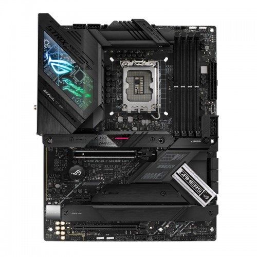 The Asus ROG STRIX Z690-F GAMING WIFI Motherboard features Intel LGA 1700 socket Ready for 12th Gen Intel Core, Pentium Gold, and Celeron Processors. Asus Prime series motherboards are expertly engineered to unleash the full potential of 12th Generation Intel processors. It comes with an enhanced power solution. 16+1 power stages with 8+8 ProCool II power connectors, high-quality alloy chokes, and durable capacitors to support multi-core processors. It features an Integrated I/O cover and VRM heatsinks with high conductivity thermal pad, L-shaped Heatpipe, four onboard M.2 heatsinks, and M.2 backplate for the M.2_1 slot. It features onboard Intel WiFi 6E (802.11ax) and Intel 2.5 Gb Ethernet with ASUS LANGuard. The Asus Asus ROG STRIX Z690-F GAMING WIFI WIFI is supported with DDR5 memory, PCIe 5.0, Intel 2.5 Gb Ethernet, USB 3.2 Gen2x2 Type-C, front panel USB 3.2 Gen 2 Type-C, Thunderbolt 4 header support, 4 PCIe 4.0 M.2. It comes with ASUS-exclusive AI Overclocking, AI Cooling, AI Networking, and Two-Way AI Noise Cancelation to simplify setup and improve performance. With four strategically placed M.2 slots, ROG Strix Z690-F Gaming WiFi leverages mighty CPU and chipset bandwidth to deliver lightning-fast PCIe 4.0 data transfers, Intel NVM Express RAID, and high-capacity drive options that blaze past traditional SATA-based SSDs. The Asus ROG STRIX Z690-F GAMING WIFI offers a sleek, futuristic-looking build with a black and white finish, space-shuttle-inspired design elements, metallic nameplates, and PCB cover. Asus 5-Way Optimization makes your PC smart. Along with taking care of complex tuning and dynamically optimizing essential aspects of your system, it provides overclocking profiles that are tailored for your rig. The Asus Asus ROG STRIX Z690-F GAMING WIFI comes with 3 years of warranty.