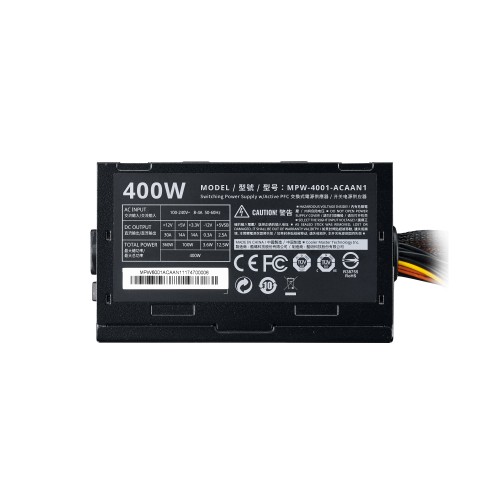 | Others | PERIPHERAL 4-PIN CONNECTORS : 3 FDD CABLE 4-PIN CONNECTORS : 1 POWERGOOD SIGNAL : 100-500ms HOLD UP TIME : >10ms at 100% Full Load MTBF : >100,000 Hours OPERATING TEMPERATURE : 10-40°C PROTECTIONS : OVP, OPP, OTP, SCP REGULATORY : TUV, cTUVus, CE, FCC, BSMI ATX VERSION : ATX 12V V2.31PFC Active PFC : (>0.9 typical) DIMENSIONS (L X W X H) : 150 x 140 x 86 mm |