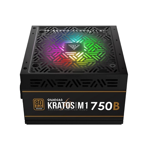 The Gamdias Kratos M1-750B 750W RGB Power Supply is a high-quality, ultra-quiet fan with an adjustable ARGB fan built-in. While retaining a safe and long-lasting power supply unit, it achieves 80 PLUS Bronze efficiency, considerably decreasing noise and operating costs.