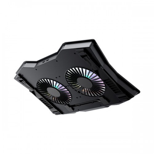 The Havit F2072 RGB Gaming Cooling Pad features Double 12CM large fans, color LED lighting effect, efficient and fast heat dissipation. It is made of ABS material. It is compatible with laptops under 17 inches. It can be used with a 9-17 inch laptop. It has a wind speed of 1000-1200RPM and the noise level is between 17-22dBA. The 7-level angle is adjustable to meet different usage habits. It has an operating angle of 6.5-45 degrees. It comes with a 2x USB 1.1 interface. It also has a 60cm long data cable. The Havit F2072 has a 1-year warranty.