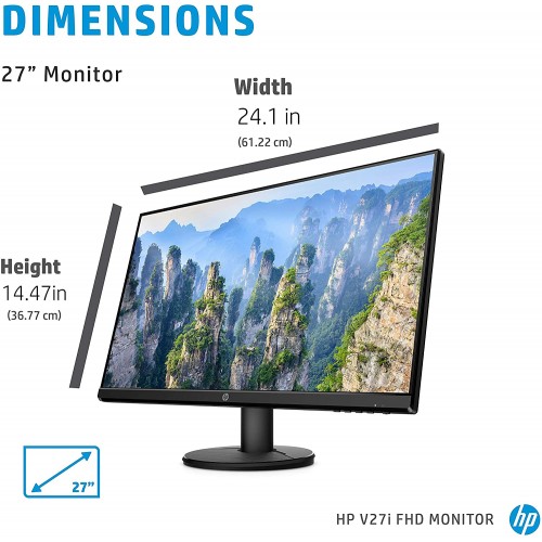 HP V27i Full HD Monitor comes with 27″ FHD (1920×1080) IPS,1080p Display, 5ms GtG Response Time, 16:9 Aspect Ratio, 5 Degree Forward or 20-degree backward tilt, Share The Panoramic View, Low Blue Light, Response Time: 5ms. This monitor is featured with Input voltage 100 to 240 VAC, 32 W (maximum), 28 W (typical), 0.5 W (standby) Power Consumption, -5 to +20° Tilt. Here, 1 x HDMI 1.4 (with HDCP support), Low Blue Light and 1 x VGA are availble. Here, Using the Low Blue Light mode that subtly shifts your display’s colours to a warmer spectrum, while making whites more natural and putting less strain on your eyes. You can adjust the screen to your personal preference with a 5-degree forward or 20-degree backward tilt. This new HP V27i FHD Monitor has 03 years warranty.