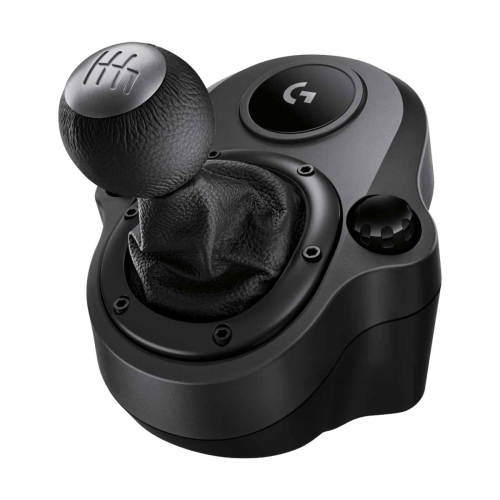 Designed to work with G29/G920 Driving Force Racing Wheels, Mounts securely to a racing rig, Six speeds with push-down reverse gear, and Steel and leather components for comfort and durability