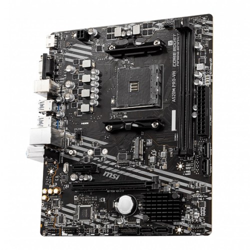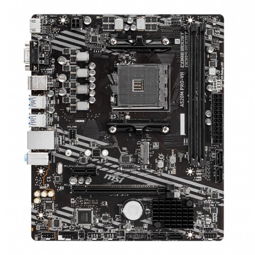 MSI A520M PRO-VH AMD AM4 Micro-ATX Motherboard supports AMD Ryzen 5000 & 3000 Series desktop processors and AMD Ryzen 4000 G-Series desktop processors. It supports DDR4 Memory, up to 4600(OC) MHz. Running at PCI-E Gen3 x4 maximizes performance for NVMe based SSDs. It features M.2 Shield Frozr. Strengthened built-in M.2 thermal solution. Keeps M.2 SSDs safe while preventing throttling, making them run faster. It comes with a premium layout and digital power design to support more cores and provide better performance. Advanced technology to deliver pure data signals for the best performance and stability. It comes with a 2oz Thickened Copper PCB. An enhanced PCB design improves heat dissipation and performance reliability. Audio Boost rewards your ears with studio-grade sound quality. It features Dragon Center – A brand new software that integrates all MSI exclusive tools with a user-friendly user interface. It has 3 years of warranty.