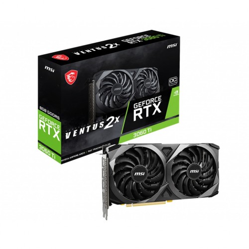 The MSI GeForce RTX 3060 Ti VENTUS 2X 8GB OCV1 LHR GDDR6 Graphics Card brings a performance-focused design that maintains the essentials to accomplish any task at hand. Rocking a trusted dual-fan arrangement laid into a rigid industrial design lets this sharp-looking graphics card fit into any build. It is designed with A clean-looking brushed-finish backplate that reinforces the length of the card. Here, A custom PCB Design provides greater reliability and beefed-up power circuitry for pushing the card to its limits. The GeForce RTX 3060 Ti lets you take on the latest games using the power of Ampere NVIDIA’s 2nd generation RTX architecture. Get incredible performance with enhanced Ray Tracing Cores and Tensor Cores, new streaming multiprocessors, and high-speed G6 memory. This latest graphics card is featured with Boost Clock / Memory Speed: 1695 MHz / 14 Gbps, 8GB GDDR6, and DisplayPort x 3 / HDMI x 1. This graphics card is designed with Dual Fan Thermal, where, The award-winning MSI TORX Fan 3.0 design creates high static pressure and pushes the limits of thermal performance also the Precision-crafted heat pipes ensure max contact to the GPU and spread heat along the full-length of the heatsink. Afterburner Overclocking Utility, this graphics card Supports multi-GPU setups. And also in this graphics card, OC Scanner automated function finds the highest stable overclock settings, and also the On Screen Display provides real-time information of your system’s performance, Predator In-game video recording. This latest MSI GeForce RTX 3060 Ti VENTUS 2X 8GB OCV1 LHR GDDR6 Graphics Card comes with 03 years of warranty.
