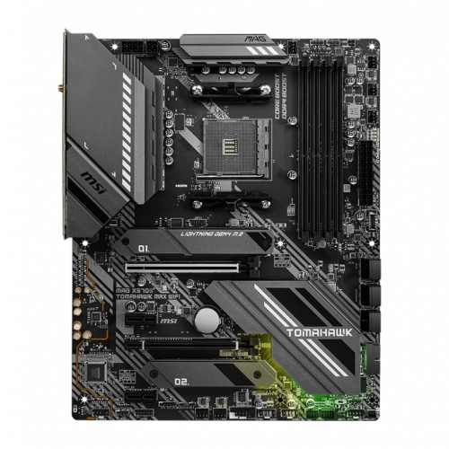 The MSI MAG X570S TOMAHAWK MAX WIFI Motherboard supports AMD Ryzen 5000 Series, 5000 G-Series, 4000 G-Series, 3000 Series, 3000 G-Series, 2000 Series, and 2000 G-Series desktop processors. It supports DDR4 Memory, up to 5100(OC) MHz. It features Premium Thermal Solution. Extended Heatsink Design and M.2 Shield Frozr are built for high-performance systems and non-stop works. It is equipped with 2.5G LAN and Intel Wi-Fi 6E Solution. Upgraded network solution for professional and multimedia use. Delivers a secure, stable, and fast network connection. Running at PCIe Gen4 x4 maximizes performance for NVMe based SSDs. Reward your ears with the studio-grade sound quality for the most immersive gaming experience with AUDIO BOOST 5. It comes with ith Steel armor PCIe slots. It also supports 2-Way AMD Crossfire. The MSI MAG X570S TOMAHAWK MAX WIFI comes with 3 years of warranty.