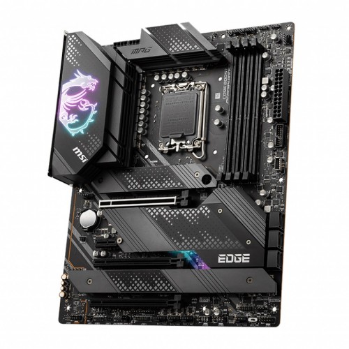 The MSI MPG Z690 EDGE WIFI DDR4 Motherboard supports 12th Gen Intel Core/ Pentium Celeron processors for LGA 1700 socket. It supports DDR4 Memory, up to 5200+(OC) MHz. It delivers a Lightning Fast Game experience with PCIe 5.0 slot, Lightning Gen 4 x4 M.2, USB 3.2 Gen 2×2. It comes with an Enhanced Power Design. Direct 16+1+1 phases power, dual 8-pin CPU power connectors, Core Boost, Memory Boost. It is equipped with an enlarged heatsink with heat pipe, MOSFET thermal pads rated for 7W/mk, additional choke thermal pads, and M.2 Shield Frozr are built for a high-performance system and non-stop gaming experience. 16.8 million colors / fancy lighting effects can be controlled in one click. MYSTIC LIGHT SYNC supports RGB, RAINBOW(ARGB), Corsair LED strips and Ambient devices. The MSI MPG Z690 EDGE WIFI DDR4 comes with a 2.5G LAN with LAN Manager and Intel Wi-Fi 6 Solution. Upgraded network solution for professional and multimedia use. Delivers a secure, stable and fast network connection. 2.5Gbps LAN provides incredible data transfer speed faster than general Gigabit LAN. This is a premium solution for demanding users. It has a 6-layer PCB made of 2oz thickened copper and server-grade level material. The MSI MPG Z690 EDGE WIFI comes with 3 years of warranty.