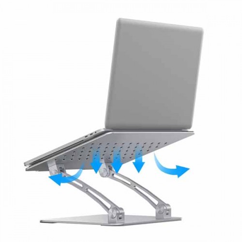 Wiwu S700 Aluminum Alloy Adjustable and Ergonomic Portable Laptop Stand Features Ergonomic Design: The Z-type design laptop stand is adjustable in height and angle with double hinges, you can elevate the laptop screen height from 3.16 to 10.6 inch to meet the eye level for better posture. Cooling & Storage: Aluminum panel with cutting hole allows airflow and cooling for your laptop. Storage keyboard or document organizer under the computer stand. Wide Compatibility: Compatible with MacBook, Dell, HP, Acer, Samsung and all laptops, size from 10 to 17.3 inch. It is suitable for desk, bed and DJ. Solid Construction: Aluminum alloy load bearing of 44LB and 4 slide proof mat and protective hooks on the stand prevents your laptop from falling. No Tool Needed: Just pull it out to the height you want and unfold the stand with some effort. This Wiwu S700 Aluminum Alloy Adjustable and Ergonomic Portable Laptop Stand has No warranty.